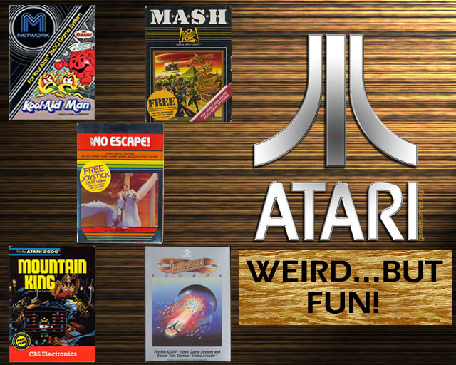 I loved playing Atari growing up. I had a respectable library of games, some bought new, some borrowed from friends, some given to me, and some bought from the local flea market (held every Thursday where I grew up). There were also some coveted games that I only got to play when I was at a friend or cousin's house, where I relished the opportunity to enjoy these new and exotic games that I did not have regular access to. This article focuses on five of the strangest games that were made for the Atari 2600 (none of them were actually made by Atari, they are all third-party games). They are all from 1982-1983, my personal golden era of Atari 2600 video game playing. They are all winners in my book, and I have a soft spot for each of them. Kool Aid Man – Mattel - 1983 My brother and I earned this game through blood, sweat and tears. OK, that was an exaggeration. We earned it through drinking gallons of Rock-a-Dile Red, Sharkleberry Fin, Purplesaurus Rex and various other flavors of Kool-Aid in an attempt to gain the much coveted Kool-Aid Points (which have been discontinued, unfortunately. That just begs for a blog post to decry the injustice!) These points could be redeemed via the mail for various trinkets, such as shirts, pitchers, or packet holders(?). But in this case, you could turn them in for a VIDEO GAME! You had to send in 125 Kool-Aid points though, which was no small feat. However, my brother and I were up to the task! I never needed to be convinced to drink Kool-Aid, anyway, but now I was on a mission, forgoing my beloved sweet tea and milk and concentrating solely on Kool-Aid. I sent the points in and anxiously awaited the package. My head was filled with visions of the Kool-Aid Man game. What would it consist of? I must admit, I wildly overestimated the graphics of the final product (I imagined a game with Kool-Aid man depicted identically to his commercial counterpart, crashing through a brick wall and bringing refreshments to children everywhere.) Needless to say, the Atari 2600 could not deliver that level of detail so I was left with the following:
