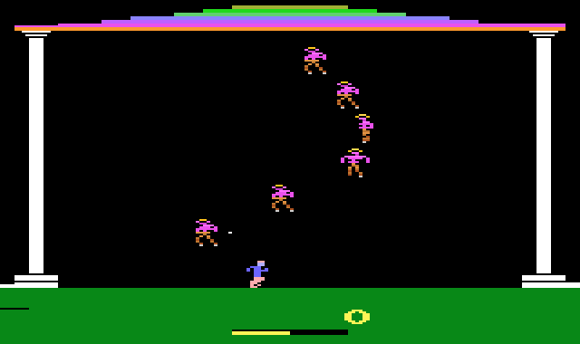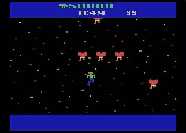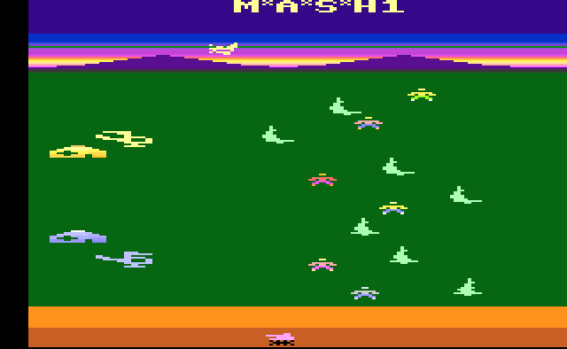 All in all, it was a pretty fun game for its time. Oh yeah! M*A*S*H* - 20th Century Fox - 1982 My father has a long-running love affair with the 4077th Mobile Army Surgical Hospital (or M.A.S.H for short). This mediocre 70’s “dramedy” still holds the record for most watched television program finale in history, but I never really saw the appeal. The show pinwheels between seriousness and levity at seemingly random times, and I am never sure if I am supposed to be laughing at their exploits or pitying them. America loved the show, though, prompting the television show to last longer than the war it was portraying. Looking to capitalize on the success of the show, 20th Century Fox decided to make a game capturing the laughs and thrills of picking up wounded and operating on them in the middle of a warzone! Sounds like fun, eh kids? In the game, you are Hawkeye Pierce, Chief Medic of the 4077, not that you ever see him, (not that I am complaining, mind you). There are two types of missions you can perform: 1. Flying a helicopter to pick up “sky-diving” medics ![]() I never saw Hawkeye do this on a single episode of the television show, and I have seen more than my share. The idea of sky-diving medics seems odd to me. How do they know where the wounded are? Why send a sky-diving medic into an active war zone, where Korean tanks are constantly shooting helicopters, when they will themselves have to be rescued along with the wounded? I am resolving that this mission should have been called “pick up wounded and bring them to the camp”, since that happened tons of times on the show, and was integral enough to the plot to be included in the opening credits. Your helicopter has to avoid trees while it picks up wounded, but the computer helicopter (excuse me, Frank Burns’ helicopter), can fly right through them. I am not sure what sorcery he uses to accomplish this, but it is unfair and annoying. If your helicopter gets shot down by the aforementioned Korean tanks, an ambulance picks you up and sends you out again. I never questioned how an ambulance could pick up a helicopter and take it to base, but the instruction book informs me the ambulance is being driven by Klinger, the cross-dressing comic relief of the show, and if anyone can get things done around there, it’s Klinger. There is also an airplane that flies back and forth at the top of the screen that has absolutely no function in the game whatsoever. I guess the programmers got bored and wanted to put something else on the screen. Whatever. 2. Operating on patients ![]() This consisted of removing pixelated shrapnel from various parts of the bodies of the wounded. As in the previous game, you can either play against a friend, or against the computer (Frank Burns). When playing single player, you can set the difficulty settings so that, and I quote from the game manual: “Frank Burns will get dumber the farther he gets ahead”. I guess they are trying to model his cockiness? Fatigue? Who knows, but it actually works fairly well. This mission is a not-too-subtle rip-off of the board game Operation, where you must carefully guide your extractor to the shrapnel and remove it from the body, taking care not to touch the shrapnel to the body. This results in some convuluted contortions you are forced to make, taking the shrapnel in a less than ideal circuitous route out of the body. Who knew surgery was so complicated? No wonder Hawkeye was hitting the booze so often, having to perform these physical gymnastics in a surgery room in the middle of a war zone. If you make the unfortunate error of touching the patient with the shrapnel, you will be punished with your turn ending, and the soul-crushing taunt “FERRET FACE”! The first time I saw this necessitated a trip to the living room to confer with my Father on the origins of its terms and its relation to the game. My father patiently, though obviously annoyed by my interruption, explained that ferret face was used as an insult on the show once. The end. Wiser, I went back to playing my game. These two rounds alternate until one player (or the computer) scores 999 points, winning the game (but not the war, the war never ends…). The game was a staple around the Pack house, with my brother and I having long sessions, with the victor usually decided by a single wounded patient. I have very fond memories of this game, and it definitely holds up. No Escape! - Imagic - 1983 ![]() This was one of the "exotic" games I didn't have growing up, but could only play when we visited my Aunt Shirley and Uncle Skip in Indiana. I was always excited to play this game, and had to patiently endure small talk about school, how old I was, how big I was, how smart I was, etc., until I could politely ask to be excused and play video games. In this game, you controlled Jason the Argonaut, and your mission is to defeat creatures of myth, such as furies, centaurs, etc. This game was similar to Breakout (a brick breaking game), but this game threw in a unique twist. You threw rocks to kill the enemies, but instead of hitting the enemies with the rocks, you had to hit the roof of the temple, which would loosen a brick, causing it to fall and (hopefully) hit one of the enemies. You should avoid hitting the Furies directly with a rock, because if you do, they multiply. Huh? I'm not sure why being hit with a rock would cause this. I've been hit with a rock plenty of times and I have never multiplied (unless that is how I was born. Hmm.... Mental note: Ask Mom about rock multiplication and its relation to my origin). You had very limited control of the rocks you throw and no control of the bricks as they fall. To make things even more difficult, the furies don’t stand still and take their lumps lying down. As the levels progressed, they moved more and more erratically, quickly dodging the falling bricks and shooting fireballs of their own. This doesn't sound so hard, but the enemies sometimes hovered a 