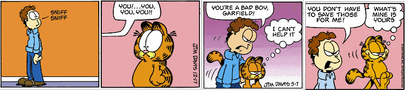 Of course, you can always create your own Garfield strip at this site. Sure, you only have a few characters and items to choose from (a surprising number of them inexplicably sleep-related), and everyone seems a little too "happy", but you can still play around. It's obvious that Jim Davis is phoning it in, and if Garfield is to be funny again, it is up to us. Good luck, fellow Garfield humor vigilantes.